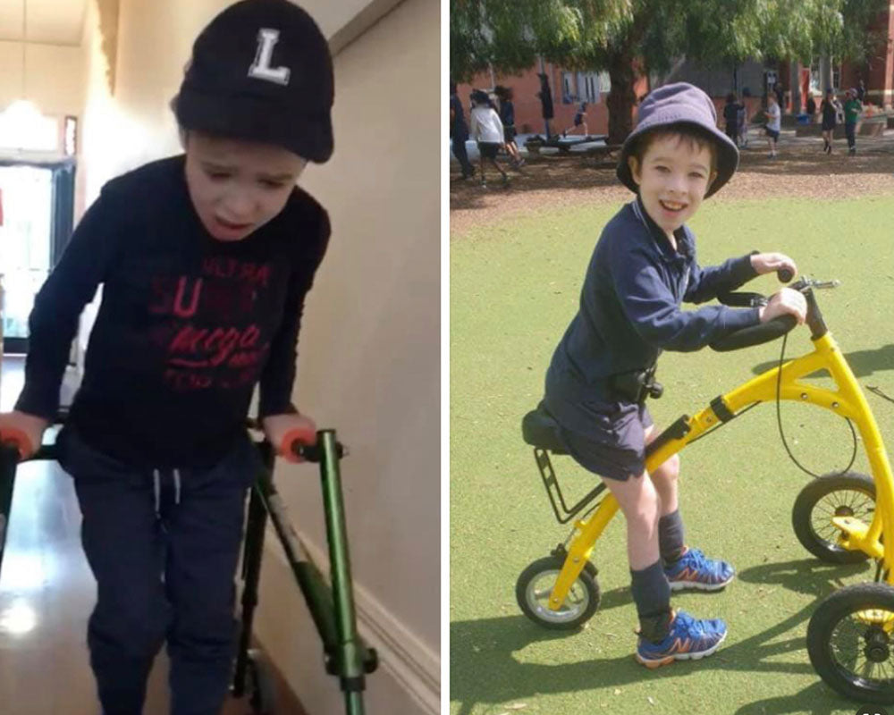 He got the XS prototype 4 years ago and it saved his life as he was close to being bedridden. Since he has the Alinker he is out and active, his joints do not suffer from collapsing, his body doesn’t seize up and he has built strength and is included at school.